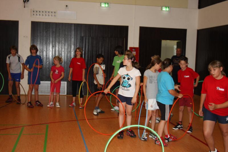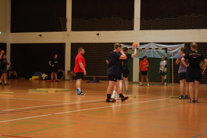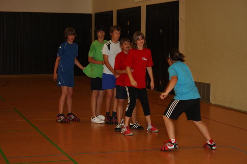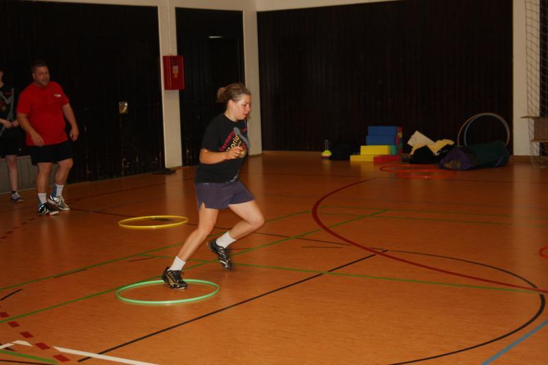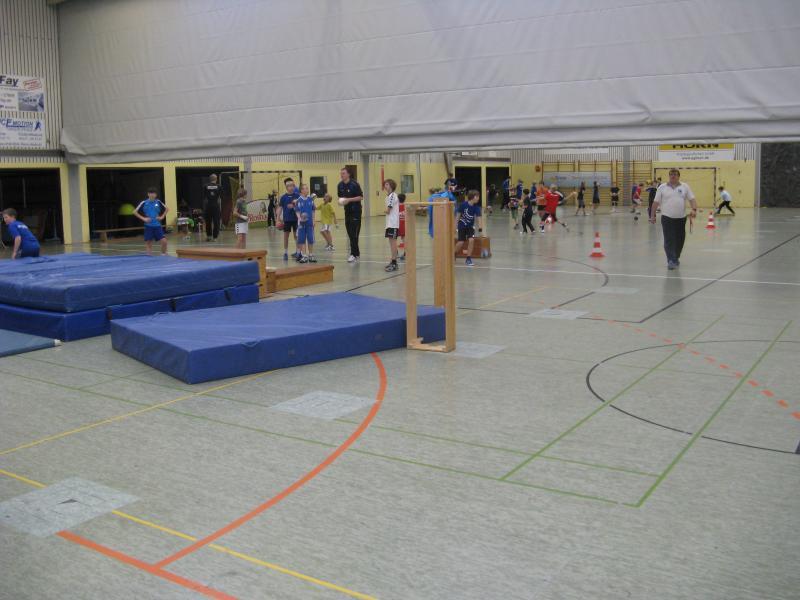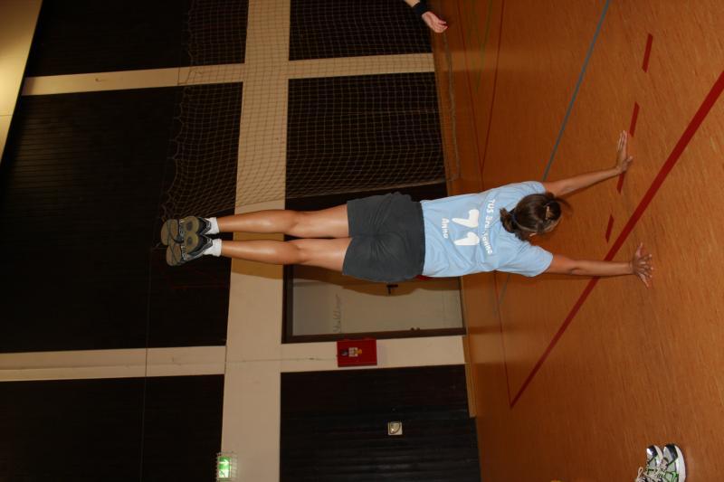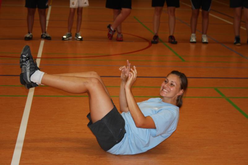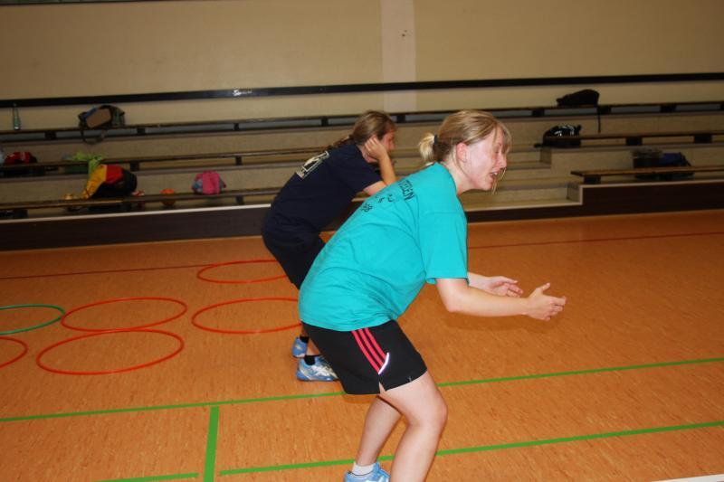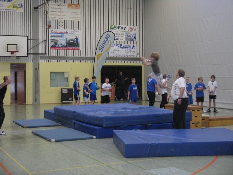 Mehr als ein Dutzend Trainer – darunter auch viele Spieler aus der Regionalliga-Mannschaft des TV Groß-Umstadt – und noch mehr Betreuer sorgten an beiden Tagen dafür, dass es den jungen Sportlern an nichts mangelte. Immerhin reichte die Bandbreite von sechsjährigen Minis bis zu A-Jugendspielern, ihnen allen wurde ein altersgerechtes Training geboten. Am ersten Tag wurde vor allem Wert auf allgemeine sportliche Fähigkeiten und Fertigkeiten gelegt. Die außergewöhnlichen Anforderungen machten den jungen Sportlern ganz schön zu schaffen und spätestens beim Bodenturnen traten Defizite in Sachen Kraft und Körperbeherrschung deutlich zu Tage. Vor allem die jungen Herren hatten mit Handstand, Rad und Co. große Probleme.