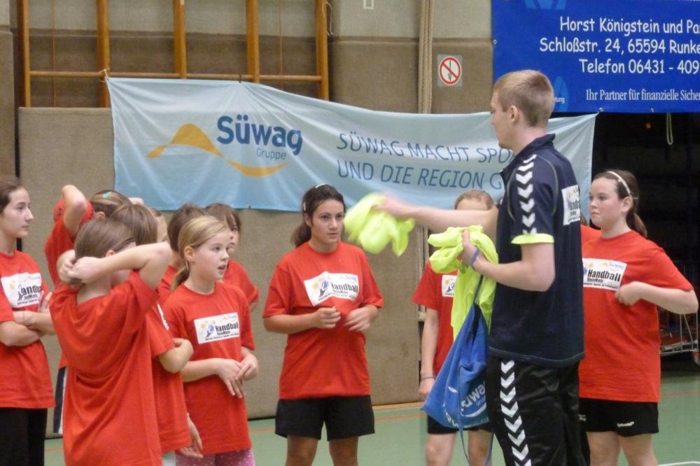 Am Sonntag folgte nach verschiedenen Technik- und Koordinationsübungen am Morgen das gemeinsame Mittagessen. Weiter ging es mit Übungen zum Teambuilding und den Abschluß des Camps bildeten verschiedene Spielformen. Für die eifrigen Handballer gab es am Wochenende Campshirts und Trinkflaschen, die von der Süwag Energie AG zur Verfügung gestellt wurden. Nach dem erfolgreichen Wochenende freuen sich alle Beteiligten bereits auf die nächste Auflage des Handballcamps.